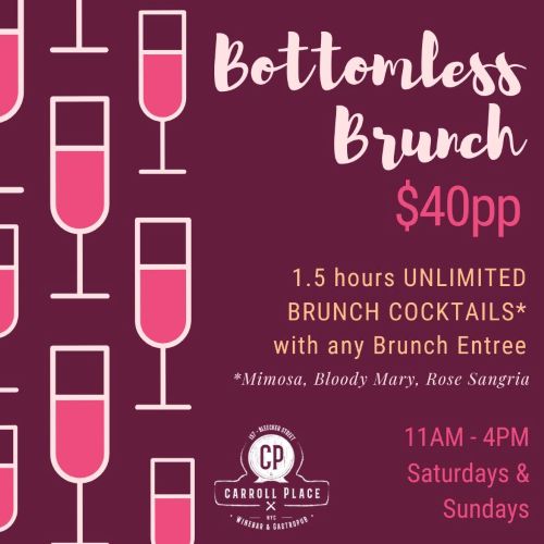 $40pp Prix Fixe Brunch includes 1.5 hours of Unlimited Brunch Cocktails* with Any Brunch Entree (*Mimosa, Bloody Mary, Rose Sangria).
